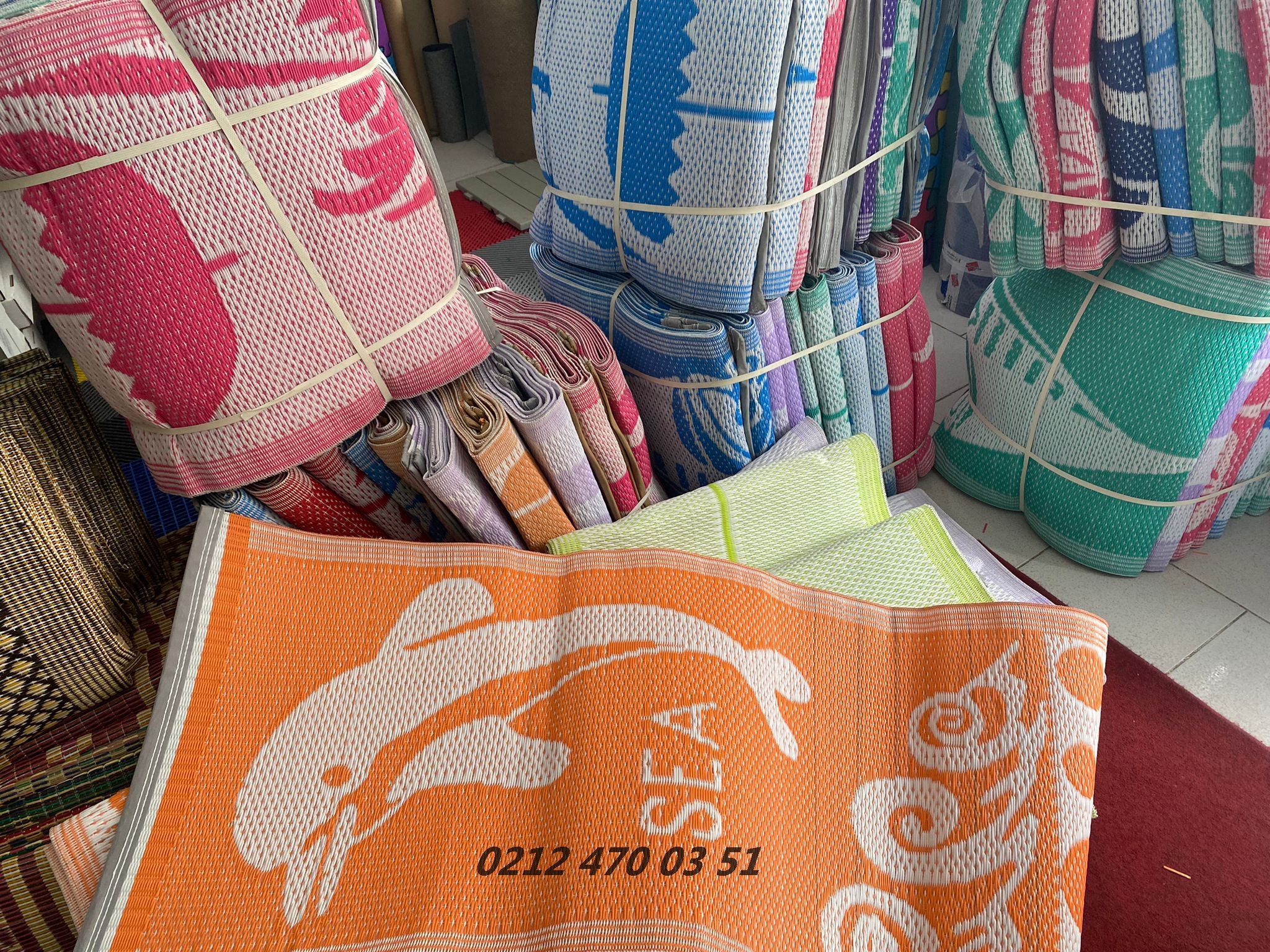 Toptan Plastik Plaj hasırlarının toptan satışını yapmaktayız hasırlarımız palmiye yunus balığı vb. desenlerinde olup bir bağın içinde dört değişik renk mevcuttur